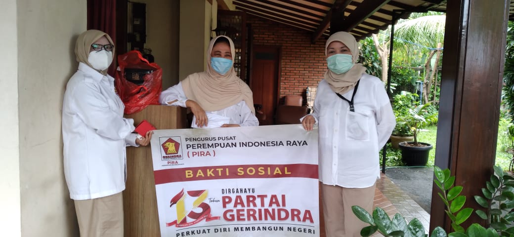 BIMATA.ID, Jakarta — Organisasi sayap partai Gerakan Indonesia Raya (Gerindra), Perempuan Indonesia Raya (Pira) merayakan Hari Ulang Tahun (HUT) Gerindra ke 13 dengan melakukan bakti sosial di 13 lokasi yang berbeda selama beberapa hari.
