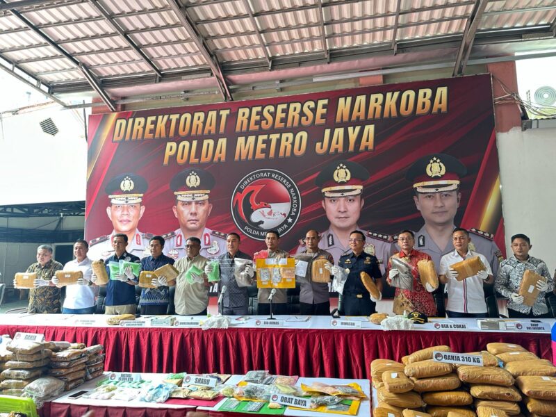 BIMATA. ID Jakarta – Direktorat Reserse Narkoba (Ditresnarkoba) Polda Metro Jaya menggelar konferensi pers terkait pengungkapan dan pemusnahan barang bukti narkotika periode Januari-Februari 2025. Kegiatan ini berlangsung pada Kamis (27/2/2025) di halaman Gedung Ditresnarkoba Polda Metro Jaya.