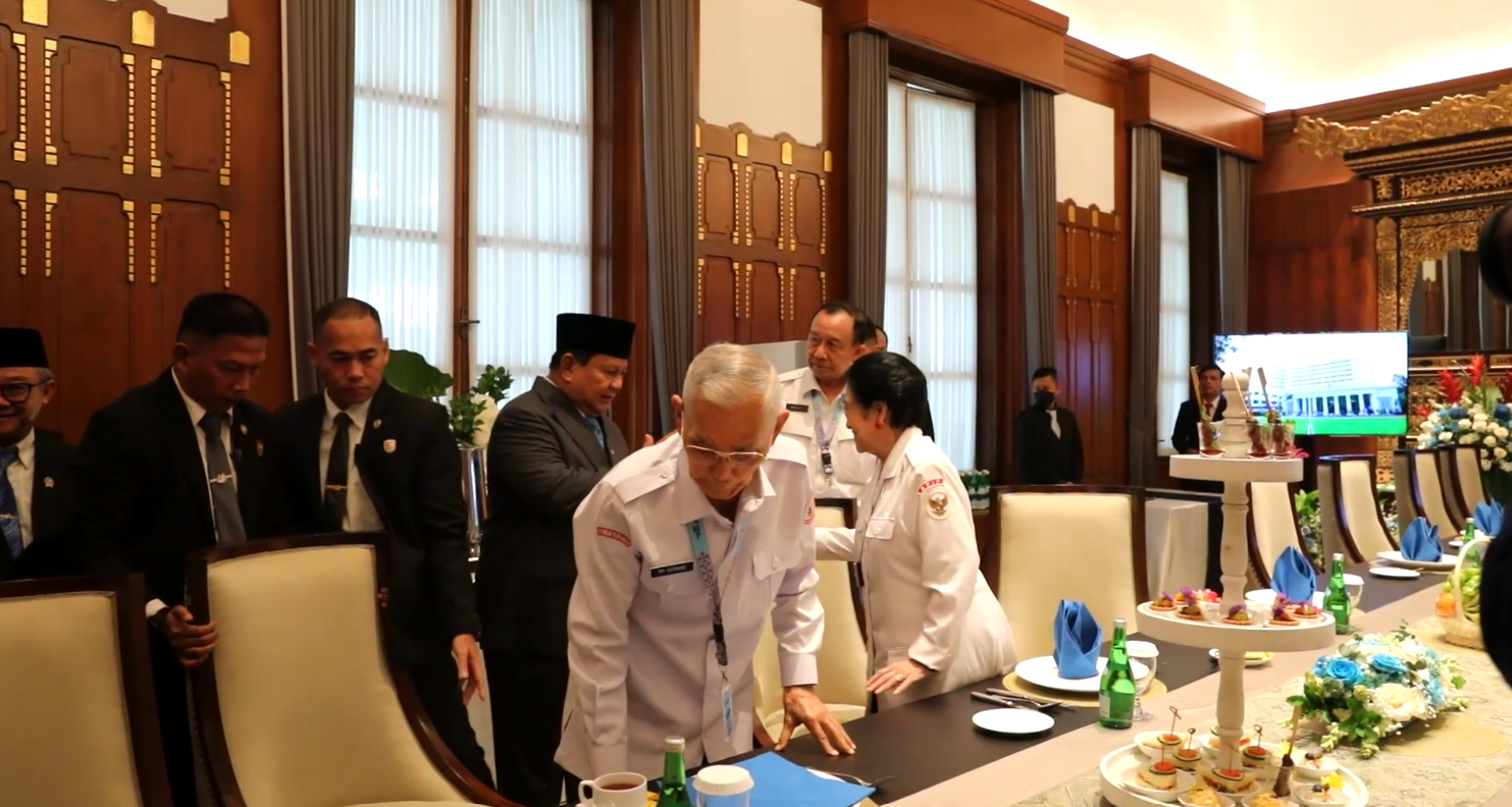 Tak lama kemudian, Prabowo bahkan sempat berpindah tempat duduk, mendekat dan duduk tepat di sebelah Megawati, menandakan hubungan yang cair dan penuh rasa saling menghormati.