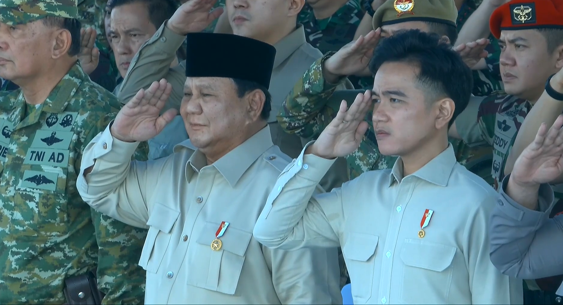 “Saya juga ingin mengucapkan terima kasih kepada komandan upacara dan seluruh peserta. Dalam pemeriksaan pasukan, saya melihat disiplin dan semangat yang menyala-nyala dari para prajurit,” kata Prabowo.