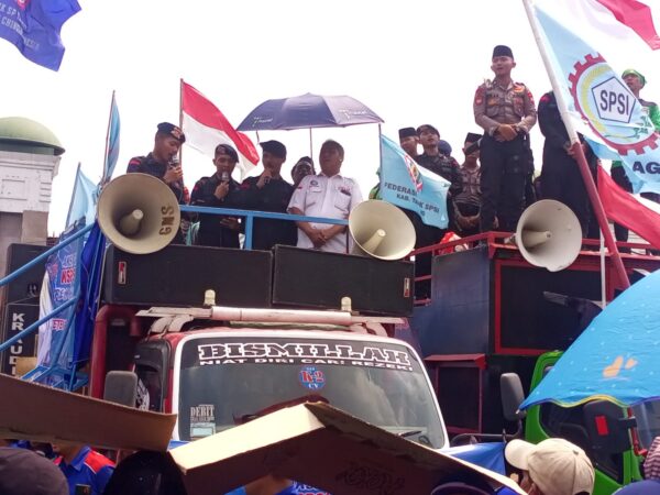 Lantunan sholawat menggema dari tengah massa dan menjadi penyejuk suasana. Para buruh yang hadir tak hanya menyuarakan tuntutan, tetapi juga menegaskan komitmen menjaga ketertiban dan persaudaraan. Momen ini pun disambut hangat oleh jajaran kepolisian yang ikut berbaur dalam doa.