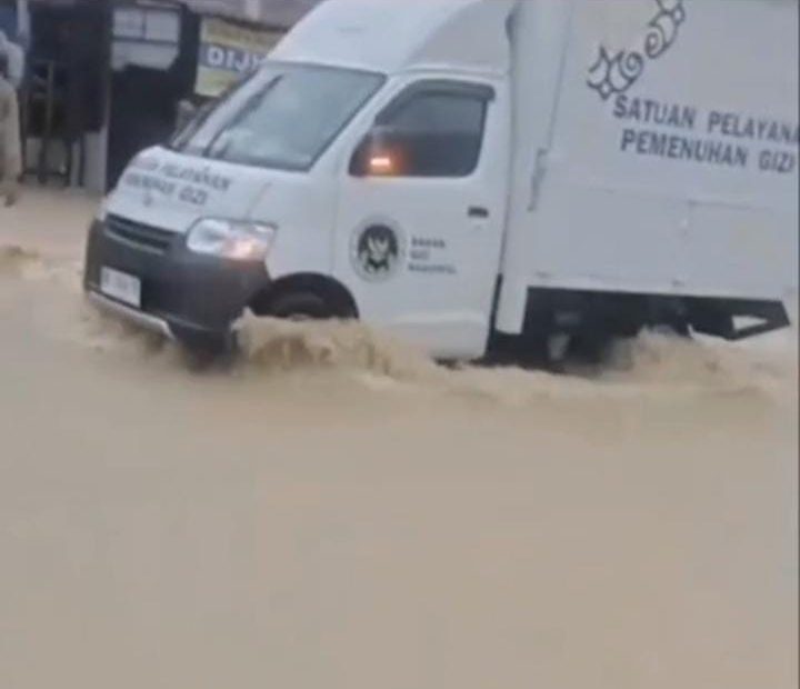 Pemerintah tak tinggal diam dan Satuan Pelayanan Pemenuhan Gizi (SPPG) setempat turut menyalurkan bantuan. Meski jalanan tertutup lumpur, mobil SPPG Beuringen tetap menerjang demi mengantarkan bantuan makanan.