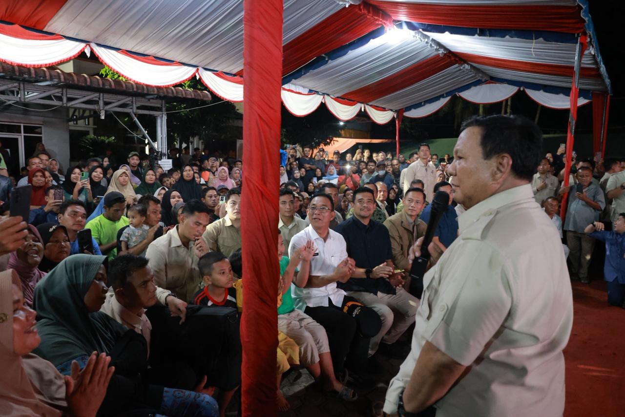 “Pemimpin-pemimpinmu, bahwa presidenmu, tidak akan pernah meninggalkan kalian. Kita bersama,” ujar Prabowo.