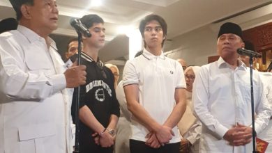 BIMATA.ID, Jakarta– Ketua Umum (Ketum) Partai Gerindra Prabowo Subianto menyambut kehadiran putra musisi Ahmad Dhani, Al Ghazali dan El Rumi saat konferensi pers usai rapat koordinasi di kediaman…