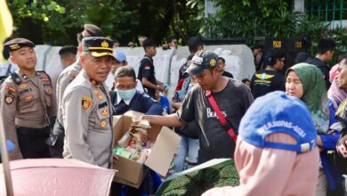Di Tengah Terik Aksi, Petugas Kepolisian Turun Bagikan Air Mineral dan Roti ke Pengunjuk Rasa